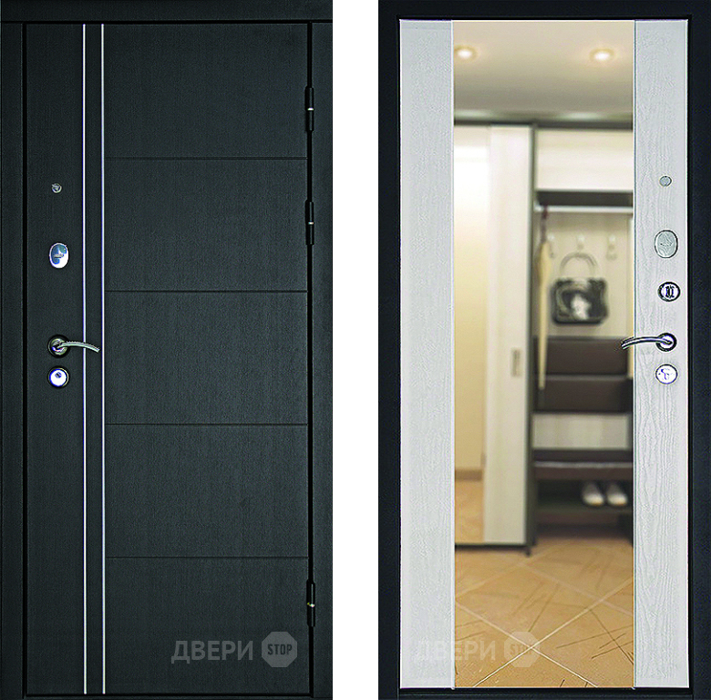 Входная металлическая Дверь Дверной Континент Тепло - Люкс Зеркало Беленый дуб 860х2050 мм