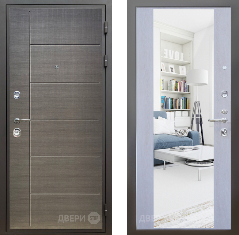 Входная Дверь Шелтер (SHELTER) Комфорт Лен сильвер 12 с зеркалом Дуб филадельфия крем 860x2050 мм